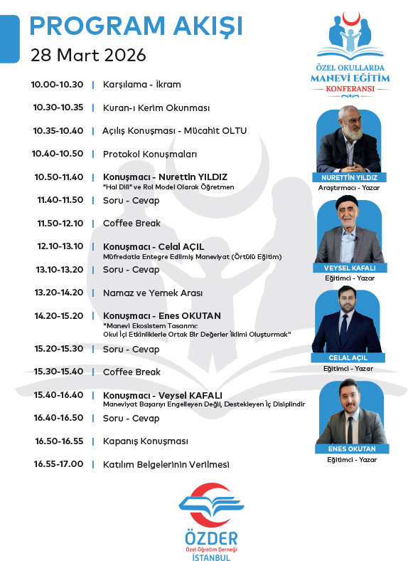 Eğitim, sadece akademik bilgilerin aktarıldığı bir süreç değil; bireyin ruh dünyasını şekillendiren, karakterini ve değer yargılarını inşa eden bir yolculuktur. ÖZDER (Özel Öğretim Derneği) İstanbul olarak, özel okullarımızdaki manevi eğitim standartlarını güçlendirmek ve eğitimcilerimize yeni ufuklar açmak amacıyla “Özel Okullarda Manevi Eğitim Konferansı” düzenliyoruz.